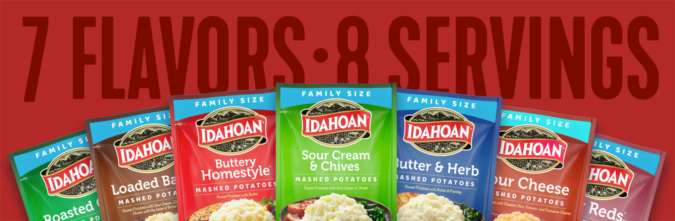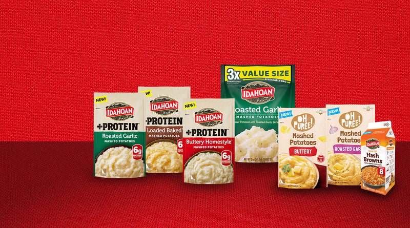 Idahoan® +Protein™ Mashed Potatoes are here to make mealtime a breeze (and a comfort). Savor the creamy, fluffy goodness of Idahoan® +Protein™ Mashed Potatoes. We washed, peeled and prepped these 100% REAL Idaho® Potatoes just for you. The flavors you know and love, now with 6 grams of protein per serving.