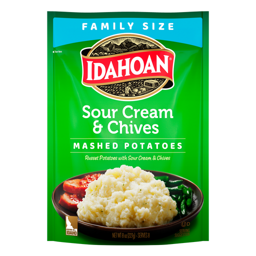In stockThe Idahoan® Sour Cream & Chives Mashed Potatoes you love, now in a family size 8 oz pouch Wholesome Idaho® potatoes, blended with real sour c...